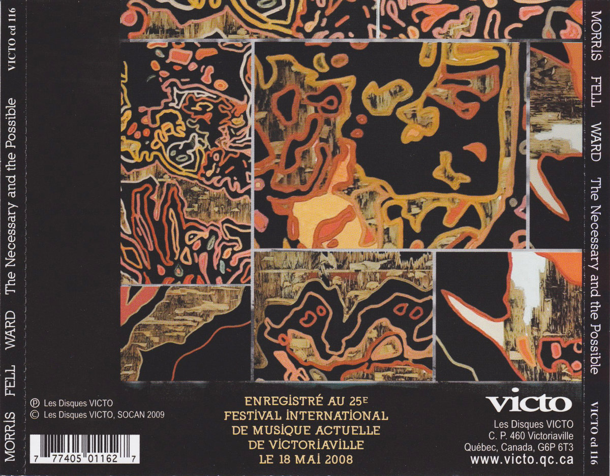 "There's an impressive consistency of purpose about the trio performance from FIMAV in 2008, documented as The Necessary and the Possible. Like Morris, clarinetist Alex Ward has dabbled with guitar as a second improvising voice, but here he is back in more familiar vein, and Simon H. Fell's huge bass sound, which always seems to represent the armature to some vast, epic/abstract form that hasn't been built yet, one of his own large-scale compositions, perhaps. Past experience of each others' moves means that the set never sounds like a thrown-together festival encounter, the kind of occasion that often provides momentary excitements at the time but rarely stands up to repeated listening. The titles cast 'improvise' in a number of (French) tenses, which allows one to say that the music produced is pluperfect, with a sheer richness and idiosyncrasy of sound - neither Ward nor Fell would be difficult to pick up in blindfold audition - that contributes to a genuinely collaborative program. Talking to Val Wilmer for As Serious as Your Life, Ornette said "A style happens when your phrasing hardens". Joe Morris's phrasing has never hardened, and his musical vision remains organic in outline and evolutionary in execution."