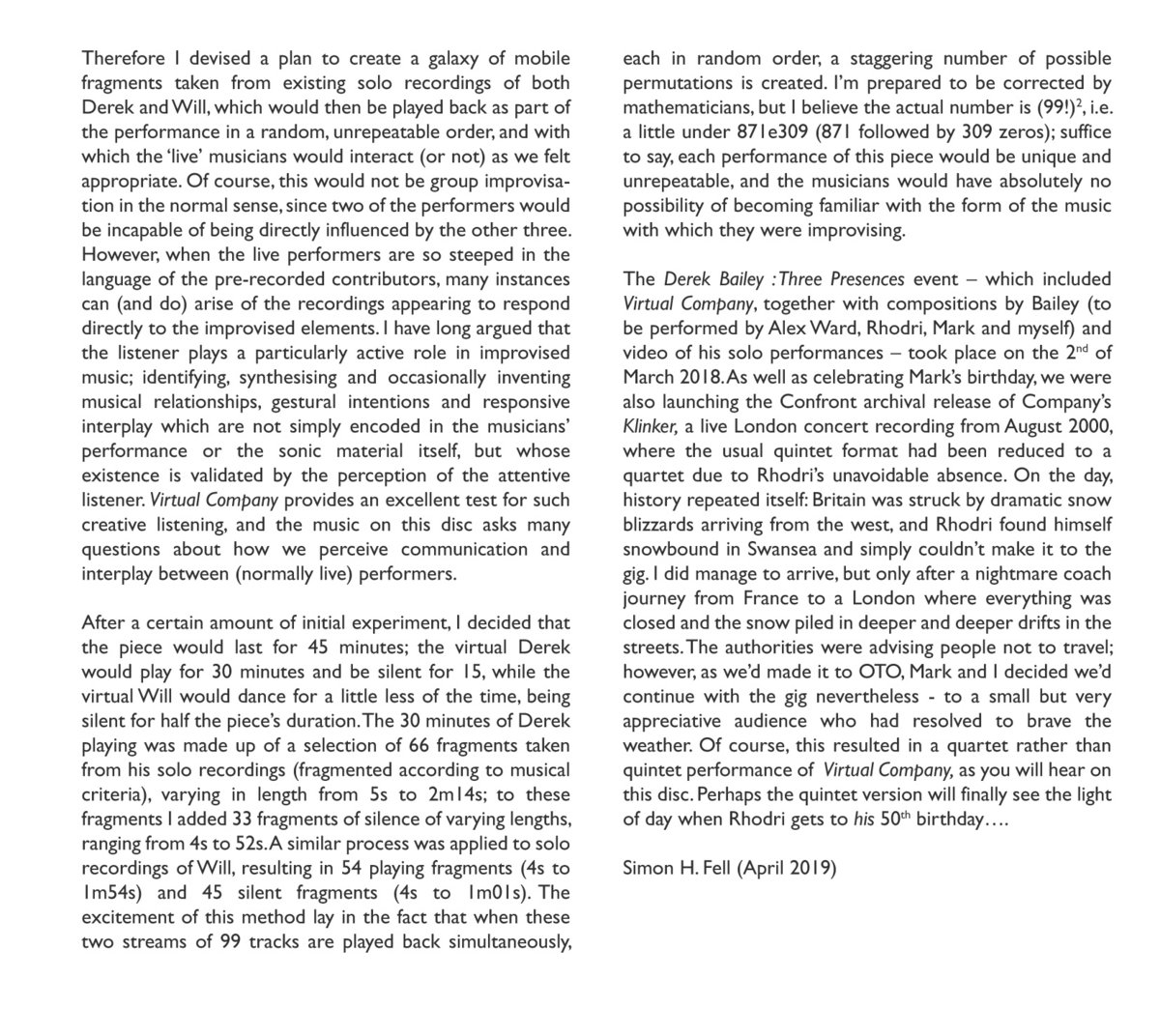 publications (which also include books and scores) are centred around free / contemporary jazz, improvised music & contemporary / experimental composition.